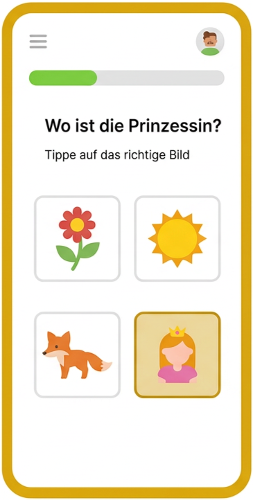Kids learn German grammar through interactive challenges, rewards, and short lessons that make game-based learning simple and motivating.